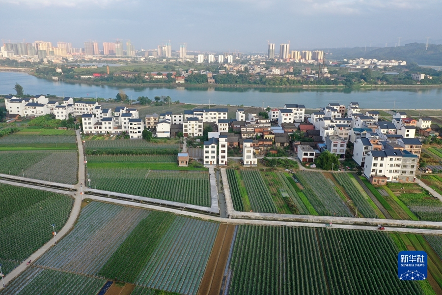 這是廣西田東縣平馬鎮四平村的蔬菜基地和民居風貌(無人機照片,11月4日攝)。新華社記者 陸波岸 攝